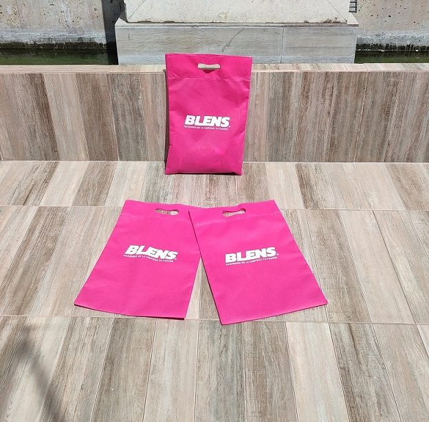 Las medidas que tienen estas bolsas ecológicas suajadas color azules y rosas mexicano es de 40 centímetros de alto x 30 centímetros de ancho muchos le llaman bolsas tipo portafolio, porque son ideales para trasportar o llevar documentos, pero en este caso el cliente las uso para trasportar una botella o bebidas promocionales incluye impresión 1 tinta en un solo lado de la bolsa ecológica.
